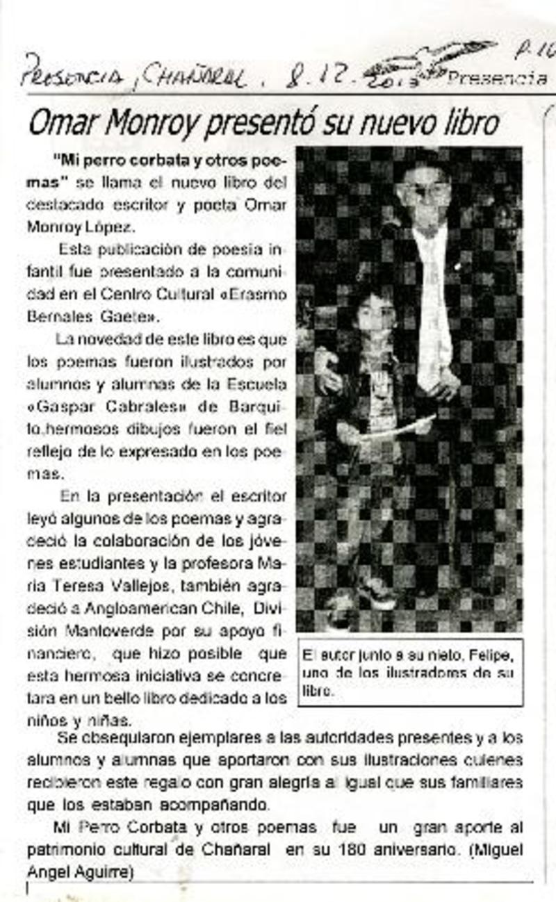 Fue presentado nuevo libro de chañaralino Omar Monroy [artículo]