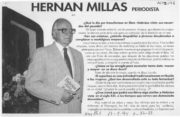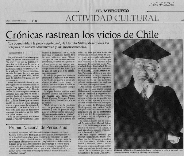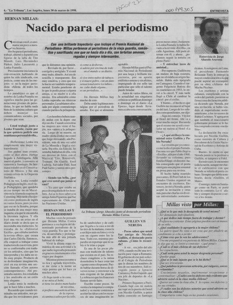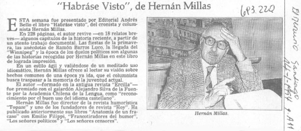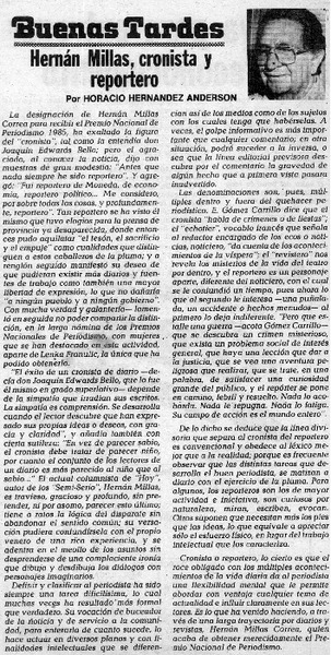 Hernán Millas, cronista y reportero [artículo] por Horacio Hernández Anderson.