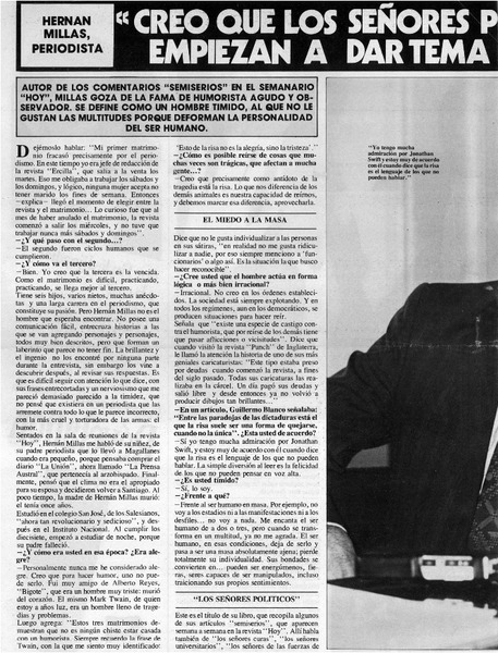 Autores chilenos - Millas, Hernán - [entrevista] - Señores políticos