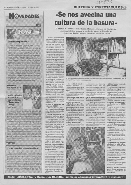 Hernán Millas, "Un país donde no hay crítica, es un país muerto" [artículo] L. N.
