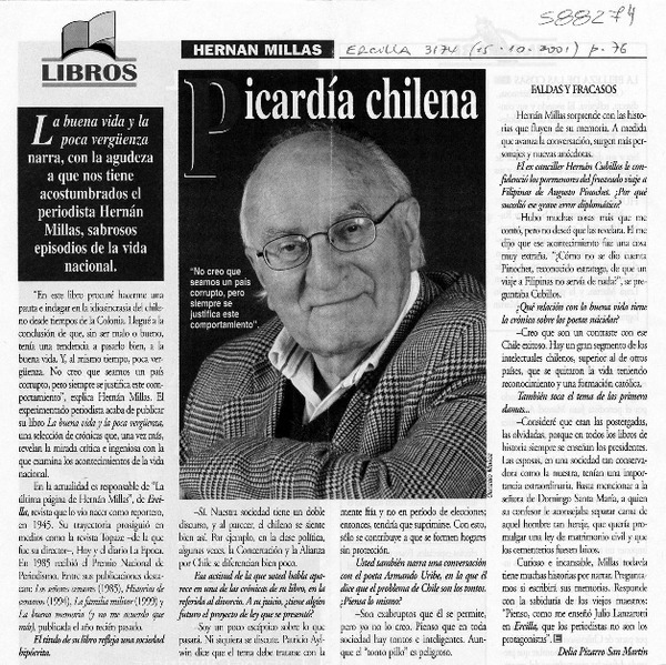 Autores chilenos - Millas, Hernán - Buena vida y la poca vergüenza