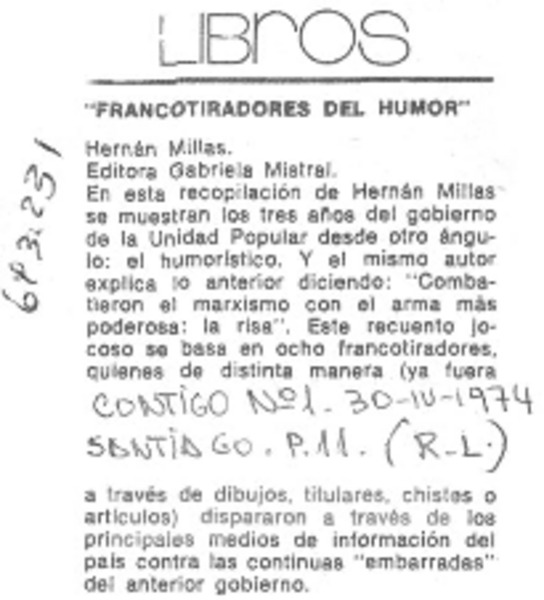 Autores chilenos - Millas, Hernán - Francotiradores del humor