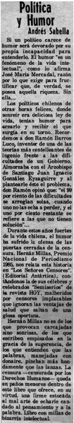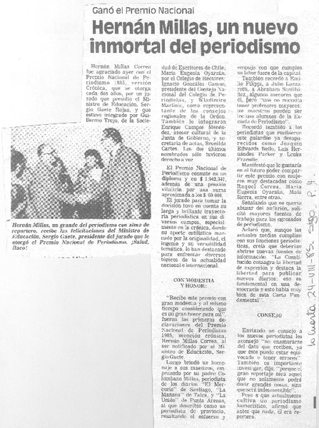 Jorge Millas, Premio Nacional de Periodismo. [artículo]