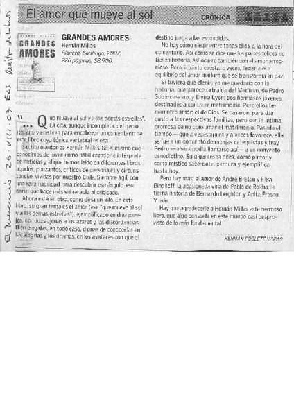 Autores chilenos - Entrevistas - Millas, Hernán - Grandes amores