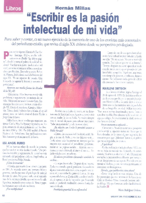 "Escribir es la pasión intelectual de mi vida" (entrevista) [artículo] Mario Rodríguez Órdenes.