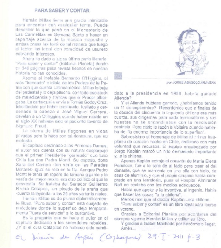 Para saber y contar [artículo] Jorge Abasolo Aravena .