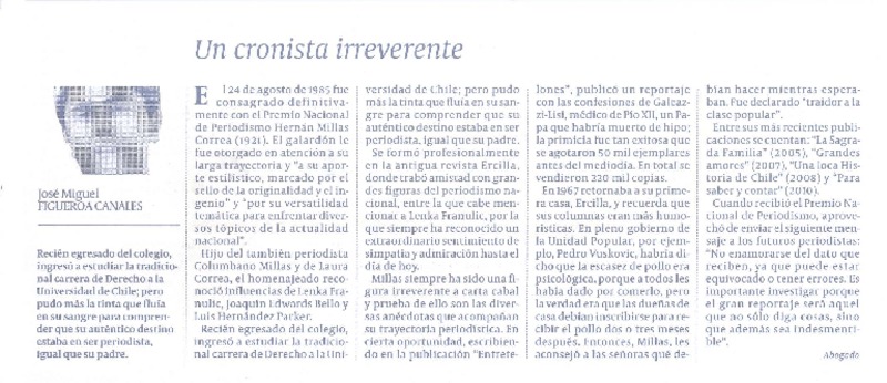 Un cronista irreverente [artículo] José Miguel Figueroa Canales.
