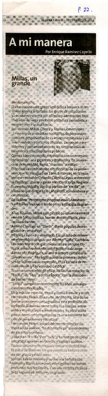 Millas, un grande [artículo] Enrique Ramírez Capello.