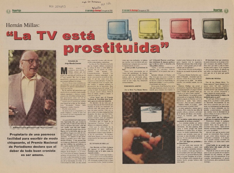 "La TV está prostituida" [artículo] Jorge Abasolo Aravena.