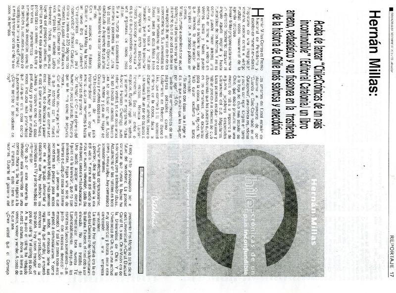 Nueva libro de Hernán Millas [artículo] Marino Muñoz Lagos