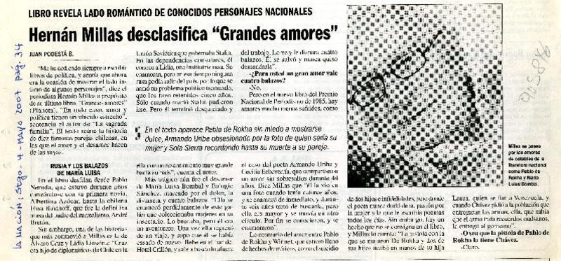 Hernán Millas desclasifica "Grandes amores" [entrevista] [artículo] : Juan Podestá B.