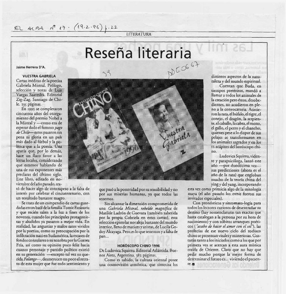 Reseña literaria [artículo] Jaime Herrera D'A.