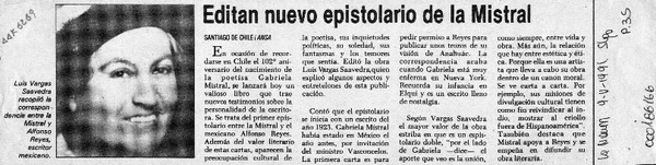 Luis Vargas Saavedra, experto en Mistral: "Es una carajada" [artículo] Soledad Gutiérrez.