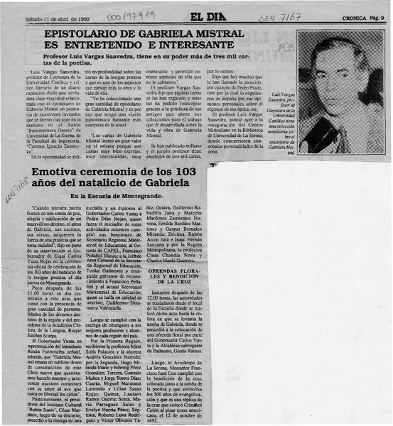 Autoras chilenas - Autores chilenos - Mistral, Gabriela - Entrevistas - Vargas Saavedra, Luis