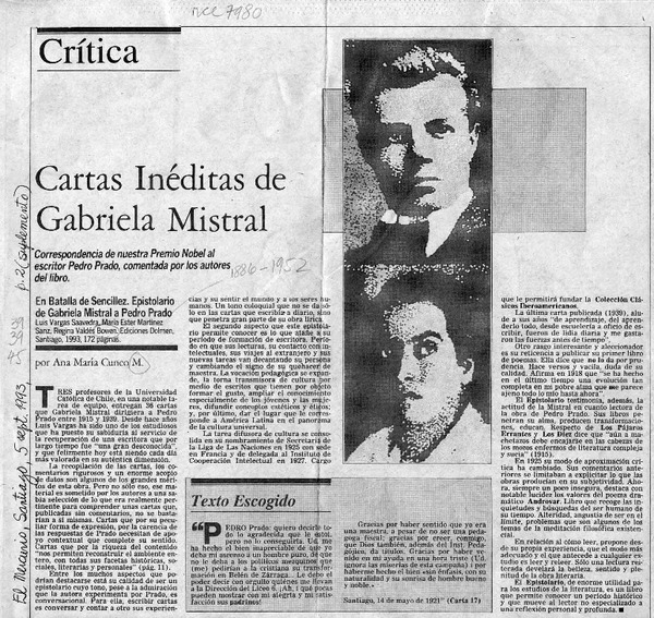 Cartas inéditas de Gabriela Mistral [artículo] Ana María Cuneo M.