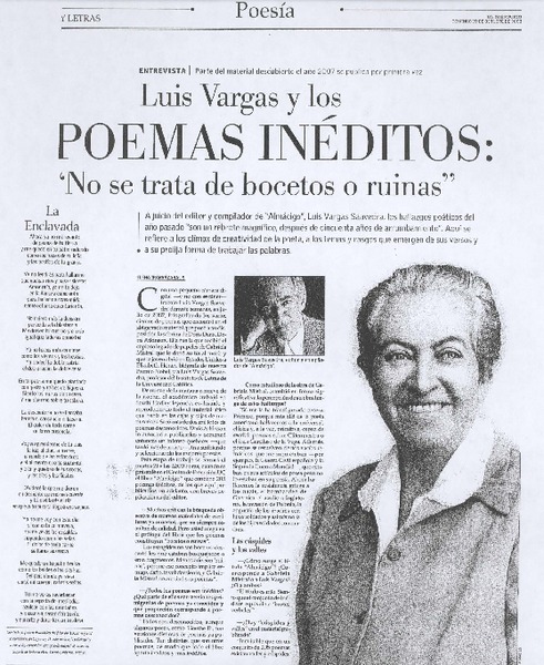 Luis Vargas y los poemas inéditos (entrevista) [artículo] Elena Irarrázabal S.