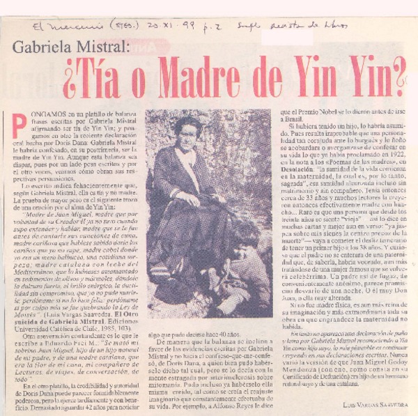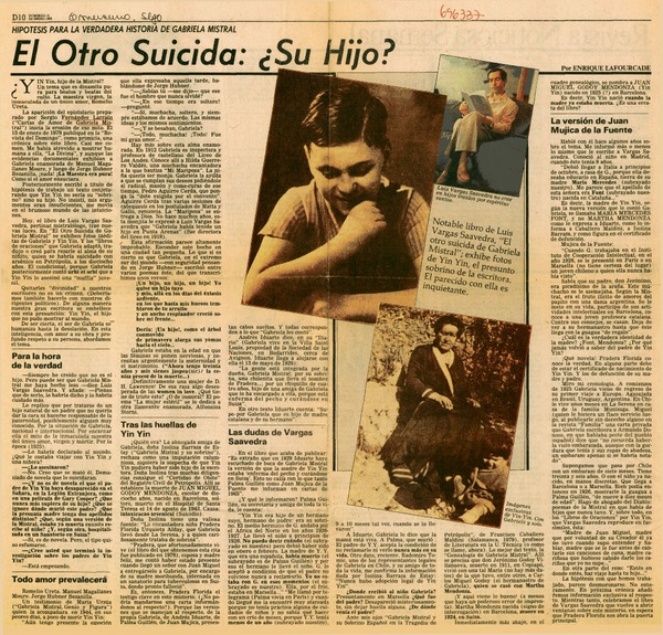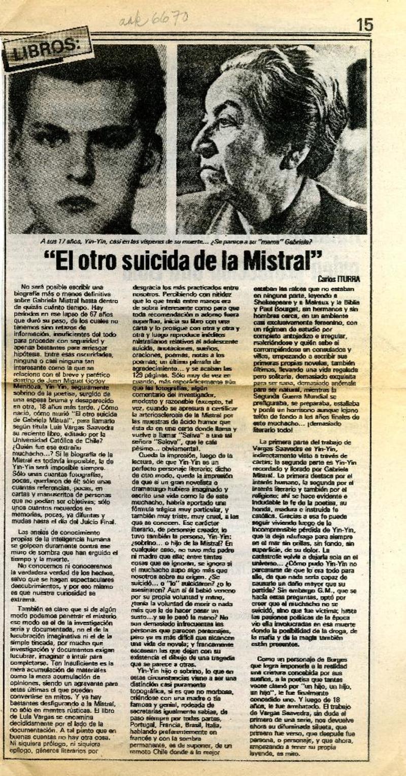 Otro suicida de Gabriela Mistral - entrevista - Yin Yin - Vargas Saavedra, Luis - Mistral, Gabriela - Autores chilenos