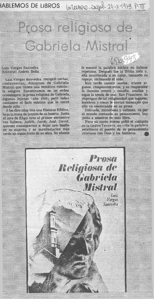 Autoras chilenas - Mistral, Gabriela - Vargas Saavedra, Luis - Prosa religiosa de Gabriela Mistral