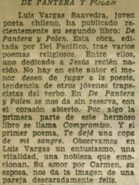 Autores chilenos - De pantera y polen - Vargas Saavedra, Luis