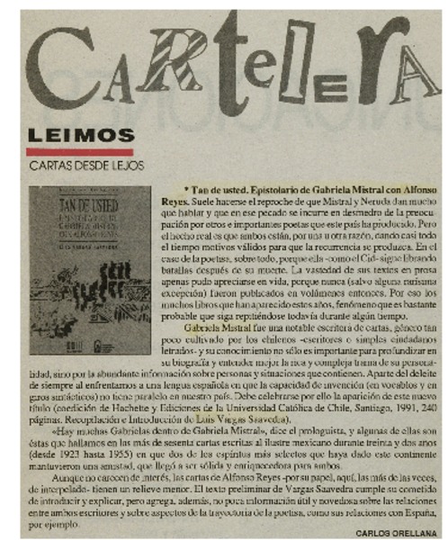 Autores chilenos - Mistral, Gabriela - Vargas Saavedra, Luis - Autores mexicanos - Reyes, Alfonso - Tan de usted