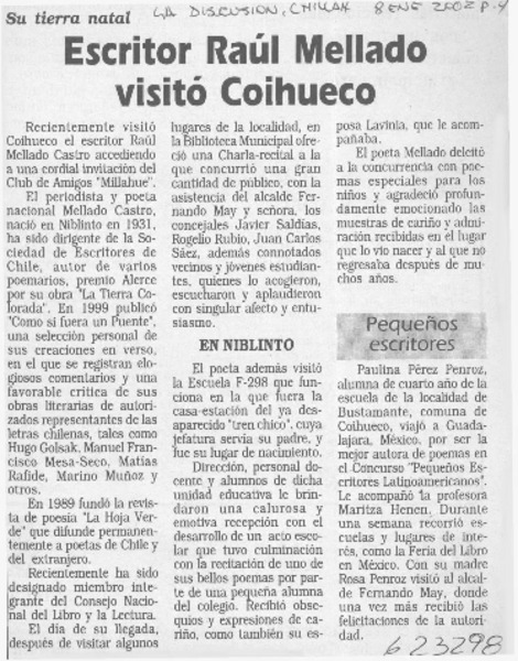Escritor Raúl Mellado visitó Coihueco [artículo]