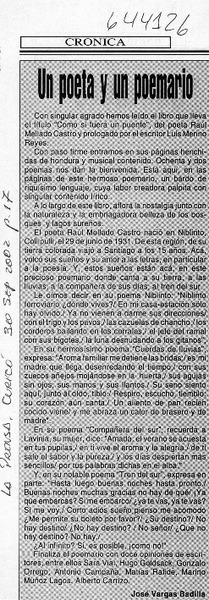 El poeta Raúl Mellado [artículo] Marino Muñoz Lagos