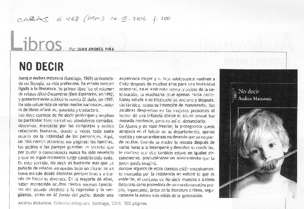 Autoras chilenas - Entrevistas - Maturana, Andrea - No decir