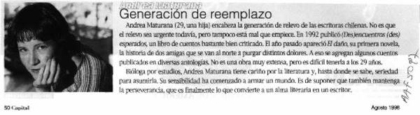 Andrea Maturana, temores y esperanzas de una promesa de la narrativa joven [artículo] Angélica Rivera.