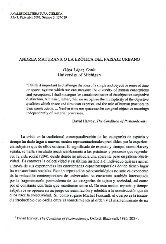 Andrea Maturana o la erótica del paisaje urbano [artículo] Olga López Cotín.
