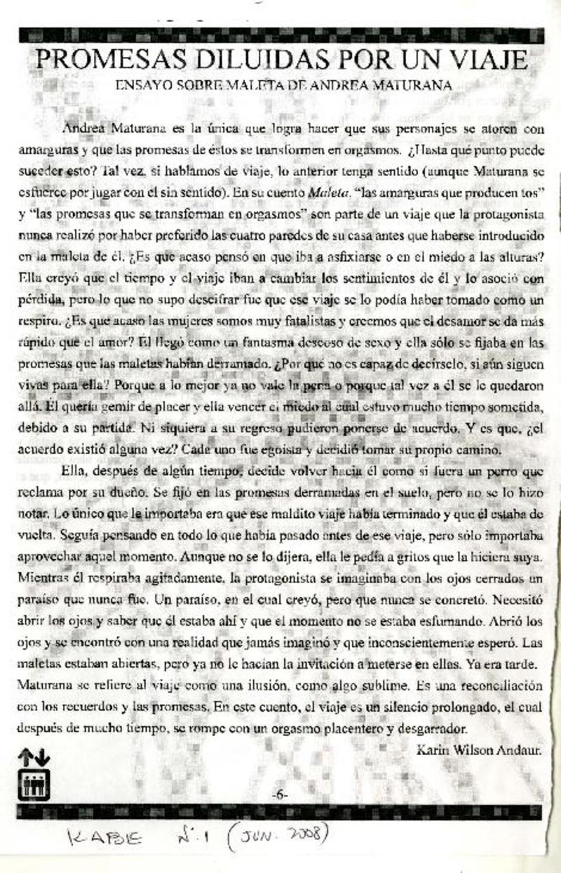 Promesas diluidas por un viaje [artículo] Karin Wilson Andaur.
