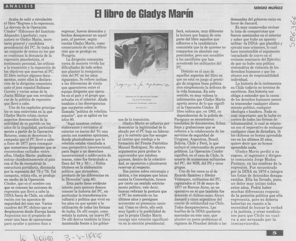 El libro de Gladys Marín [artículo] Sergio Muñoz