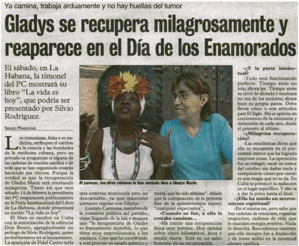 Gladys Marín reapareció en feria literaria de Cuba [artículo] Patricia Grogg.