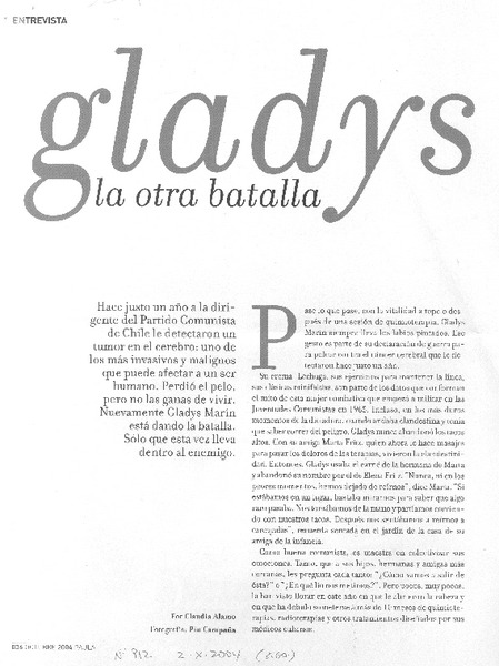 Gladys la otra batalla. (entrevistas) [artículo] Alamo, Claudia.