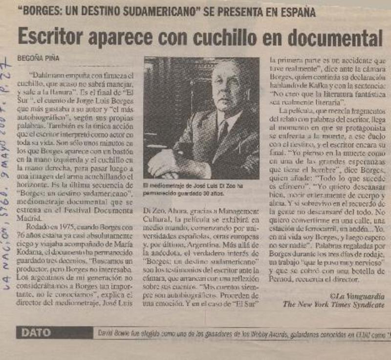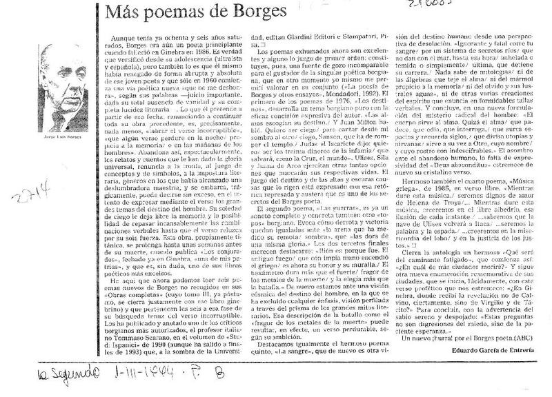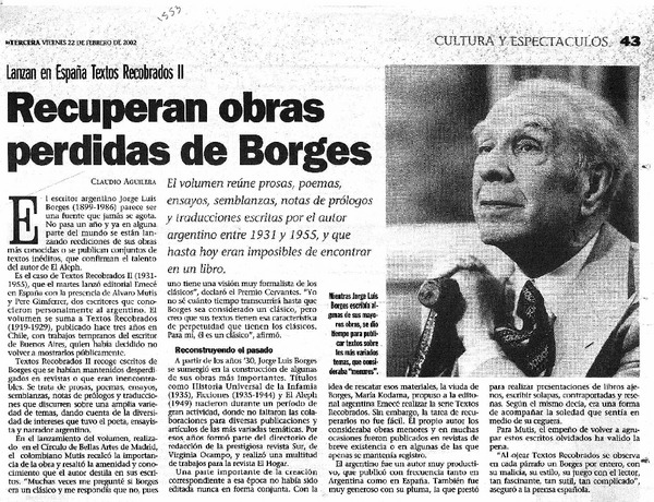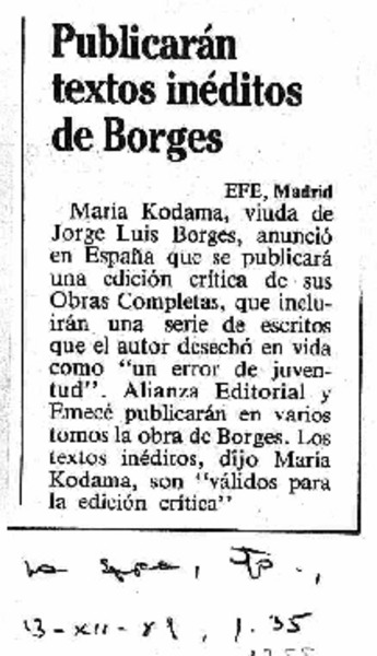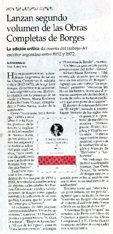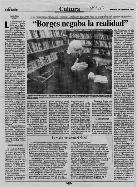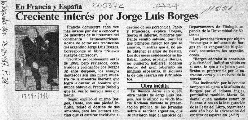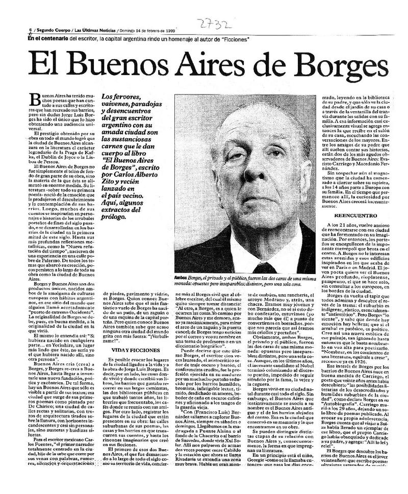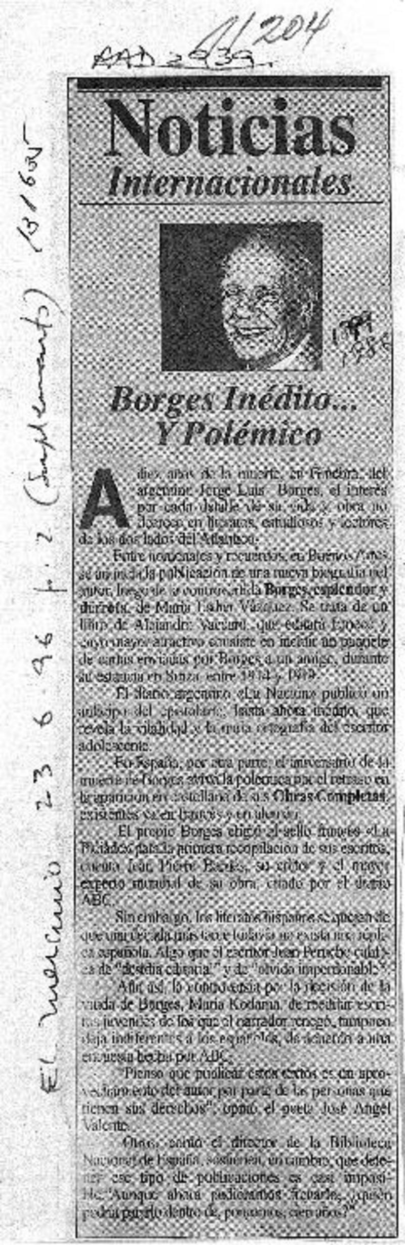 Biografía rescata documentos inéditos a 20 años de la muerte de Borges [artículo] A.G.B.