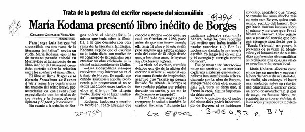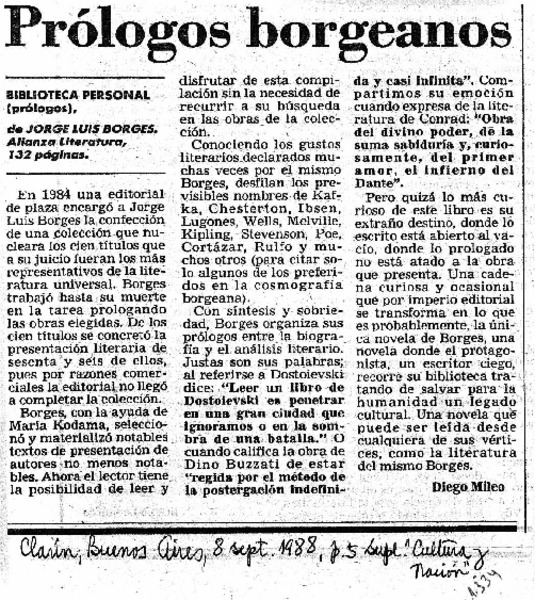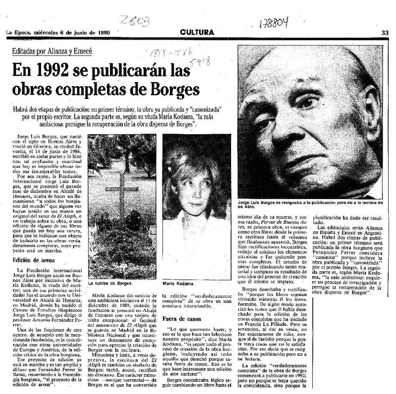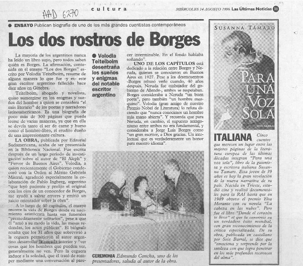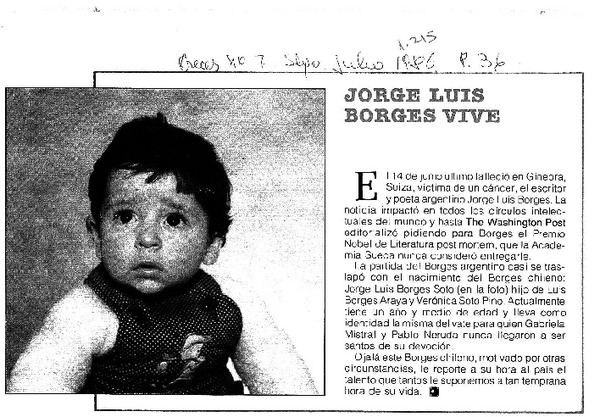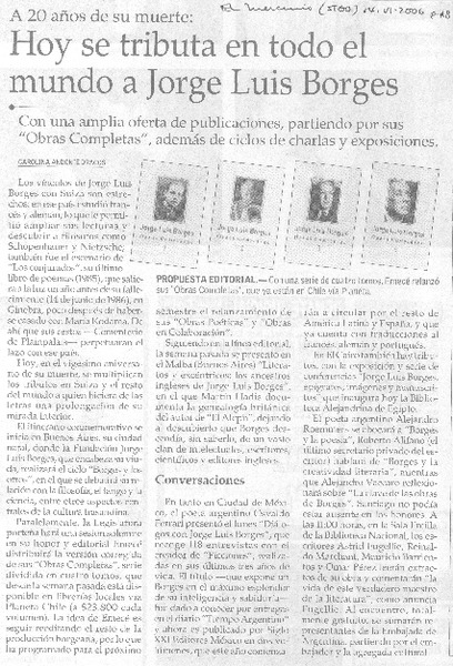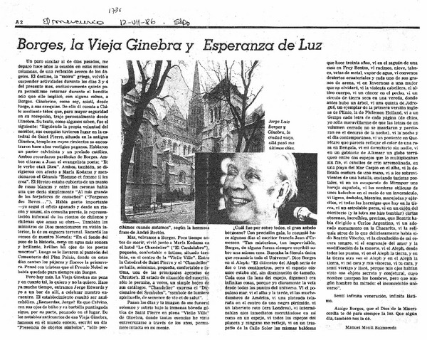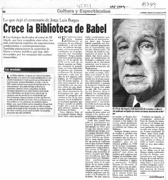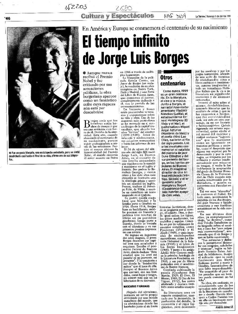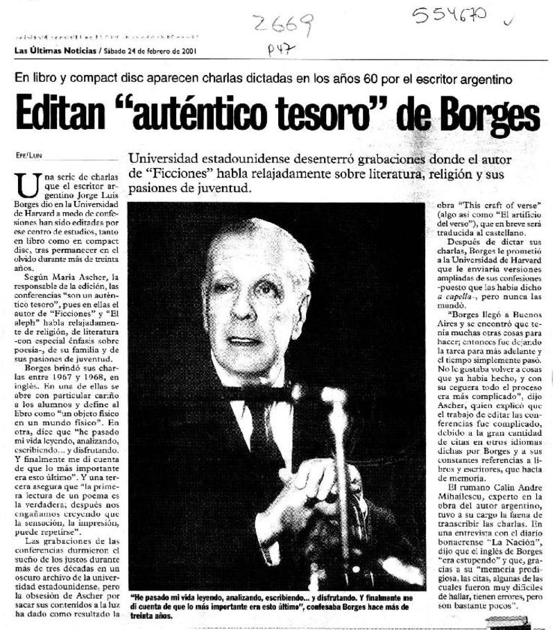 Biografía rescata documentos inéditos a 20 años de la muerte de Borges [artículo] A.G.B.