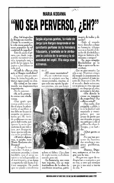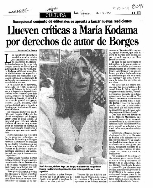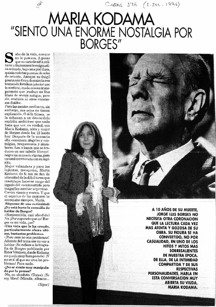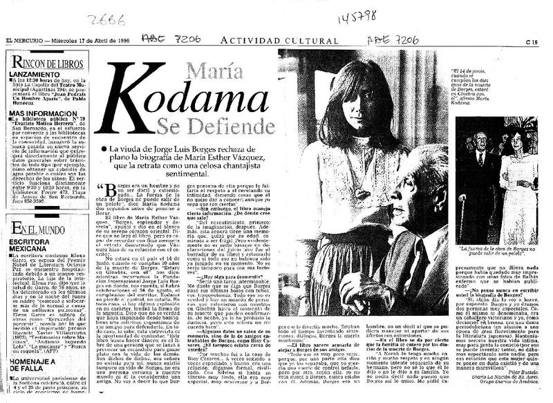 Acusan a María Kodama de llevar a Borges a morir en Suiza [artículo].