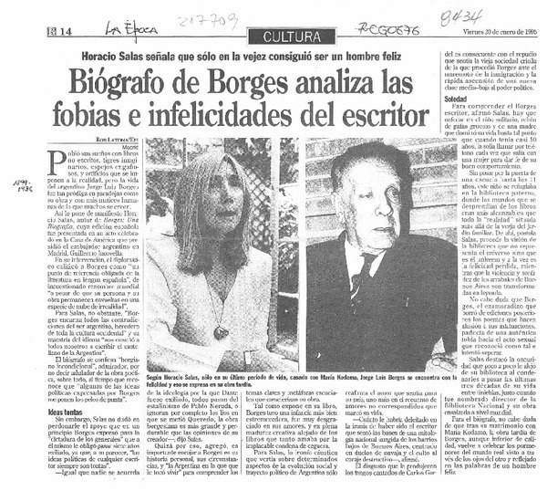 Biógrafo de Borges analiza las fobias e infelicidades del escritor [artículo] Bob Latona.