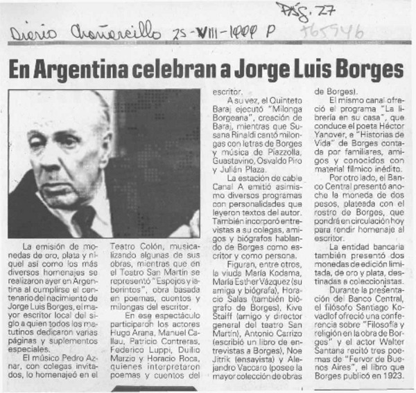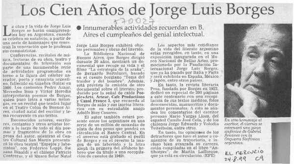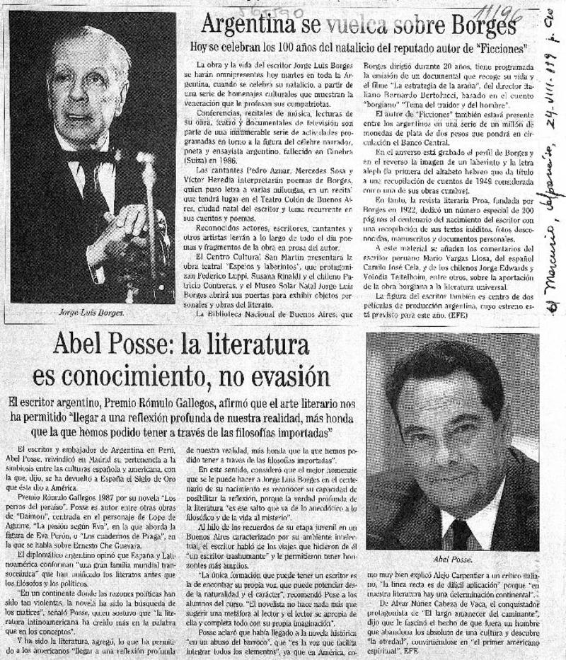 Argentina se vuelca sobre Borges [artículo] EFE.