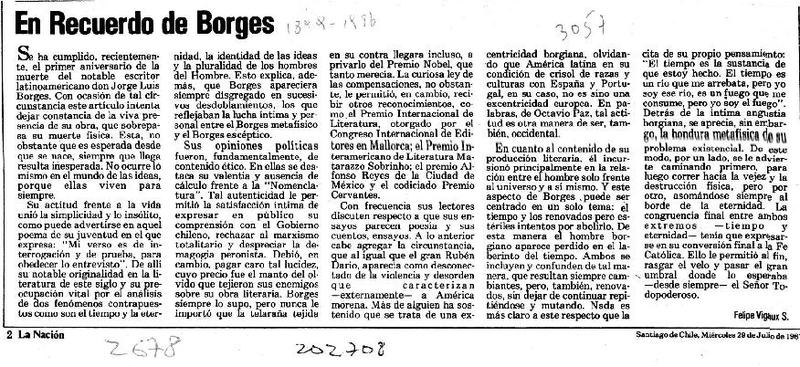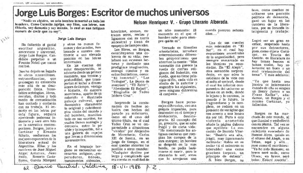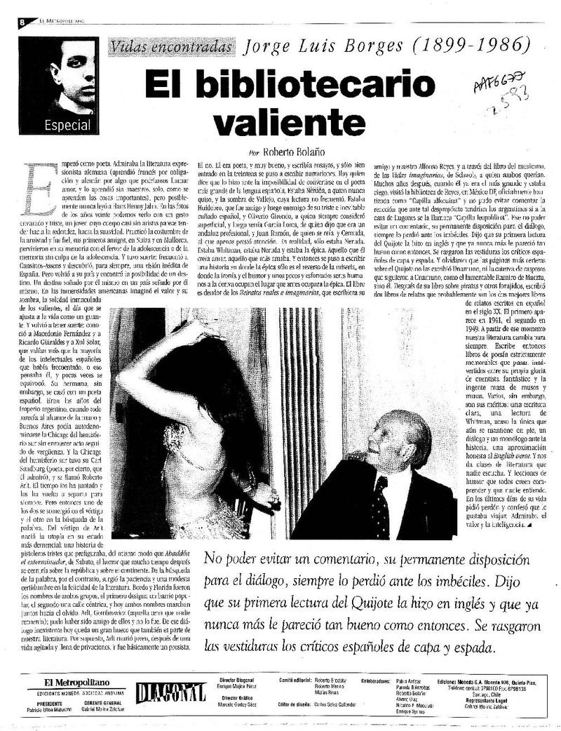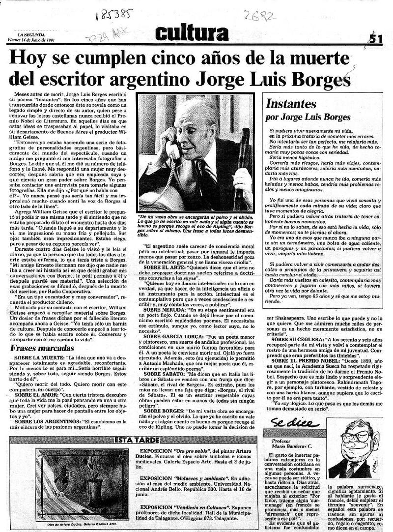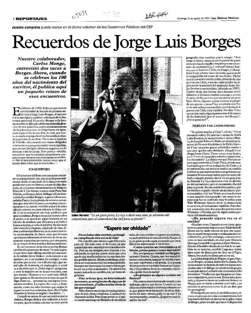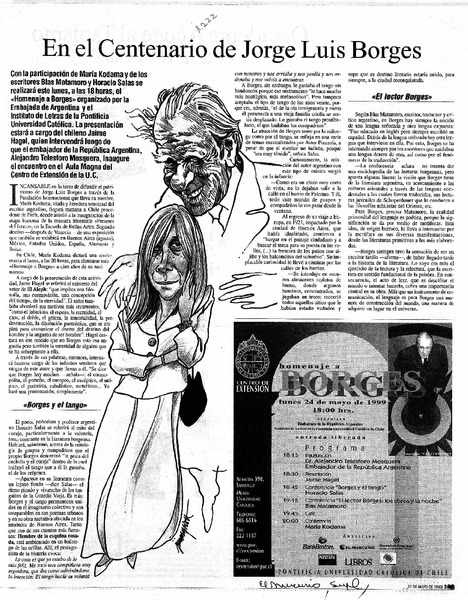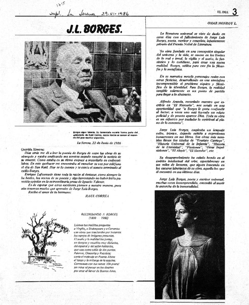 Borges 15 años después [artículo] Rodolfo Garcés Guzmán.