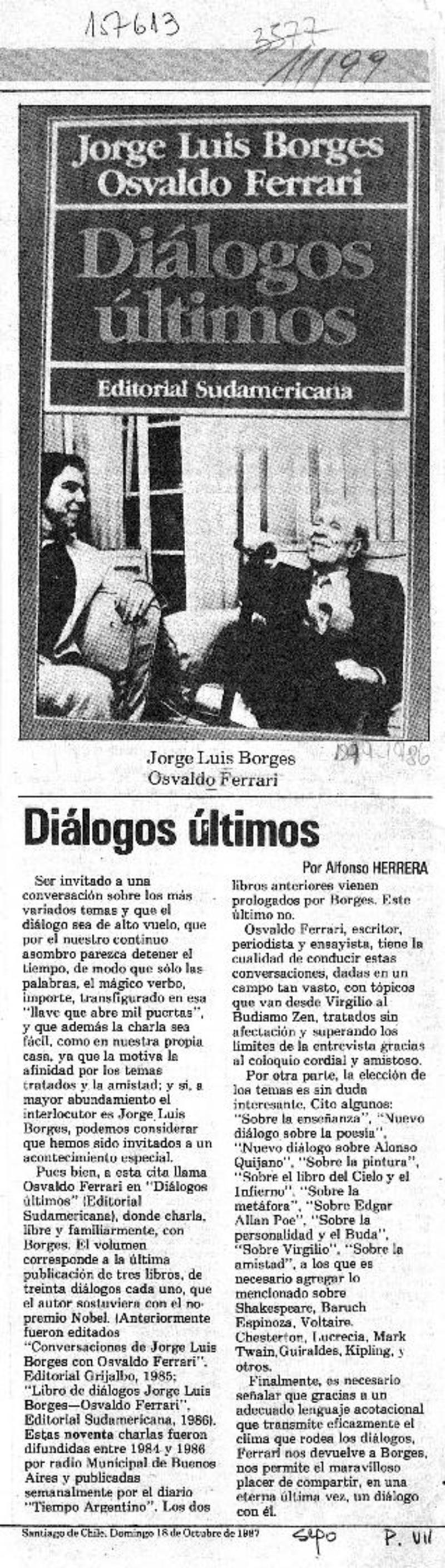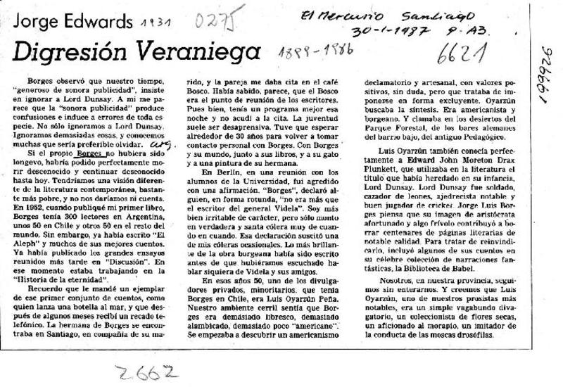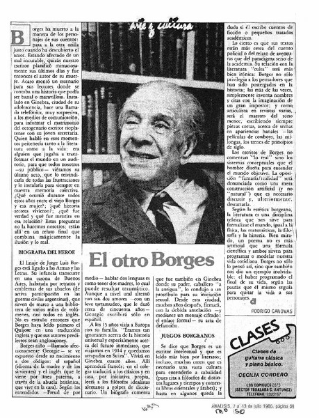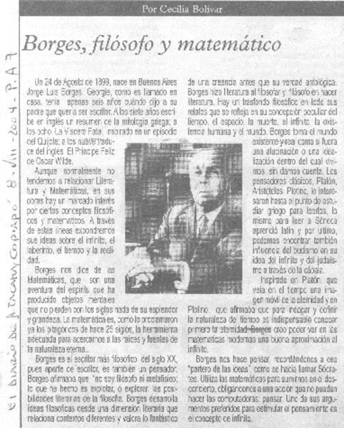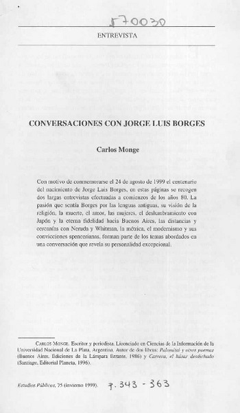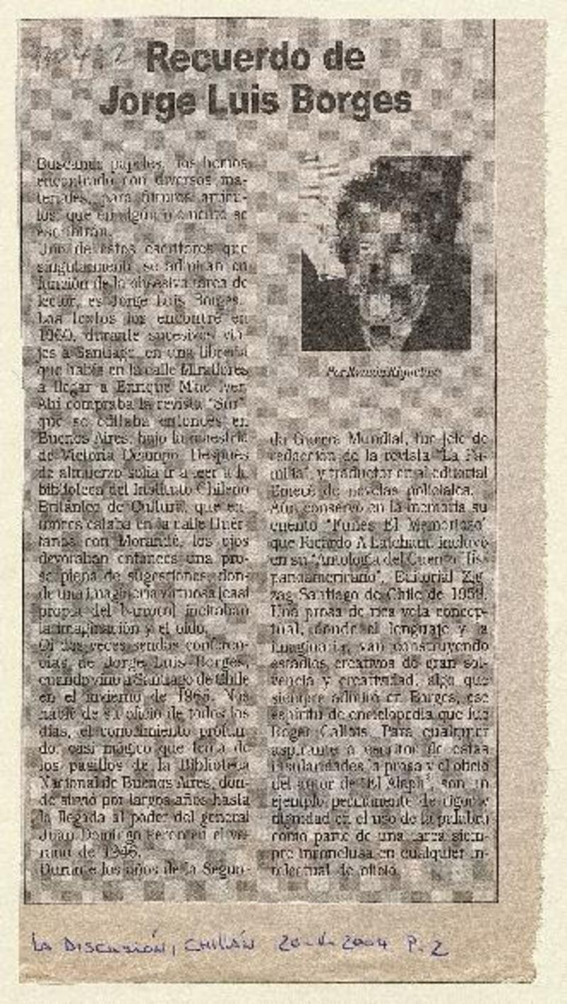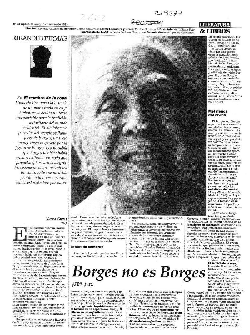 Borges 15 años después [artículo] Rodolfo Garcés Guzmán.
