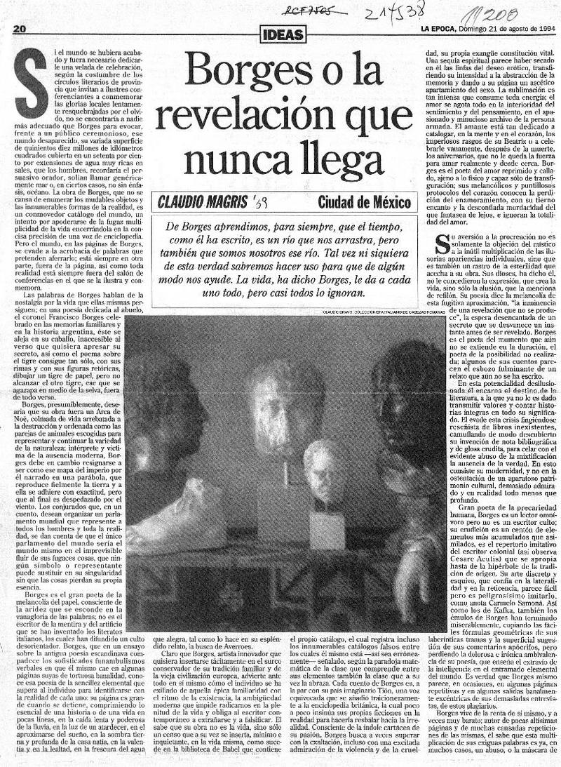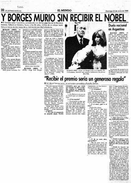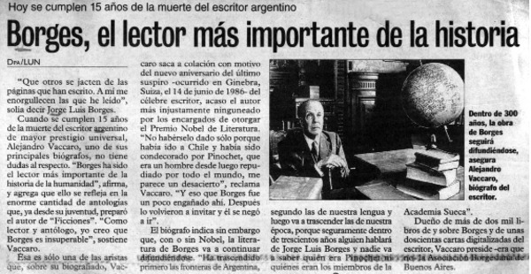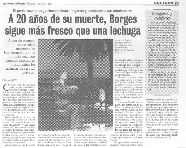 A 20 años de su muerte, Borges sigue más fresco que una lechuga [artículo].
