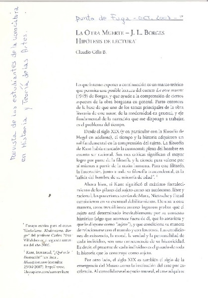 Temporalidad y existencia en "El milagro secreto" de Jorge Luis Borges [artículo] Cristián Montes Capó.