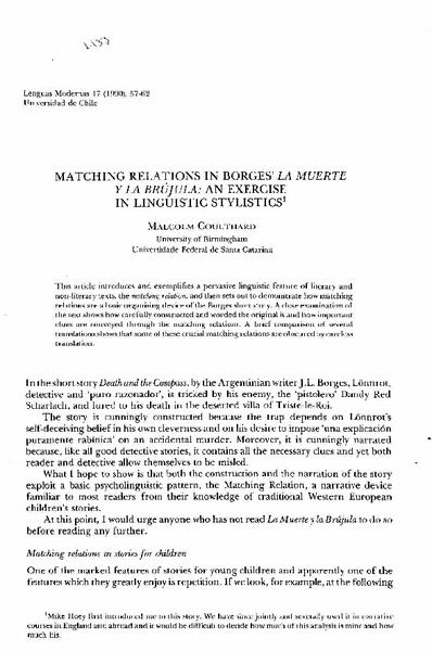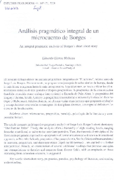 Análisis pragmático integral de un microcuento de Borges [artículo] Eduardo Llanos Melussa.
