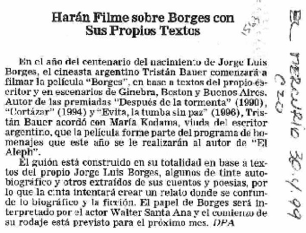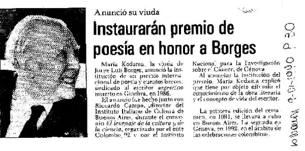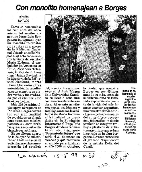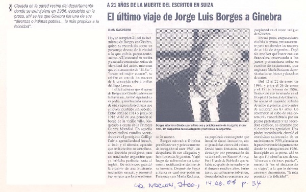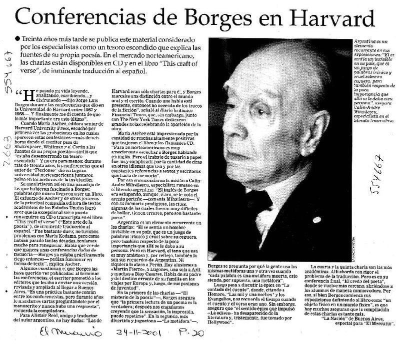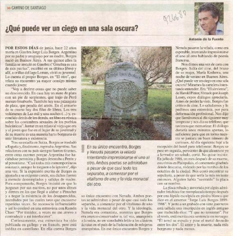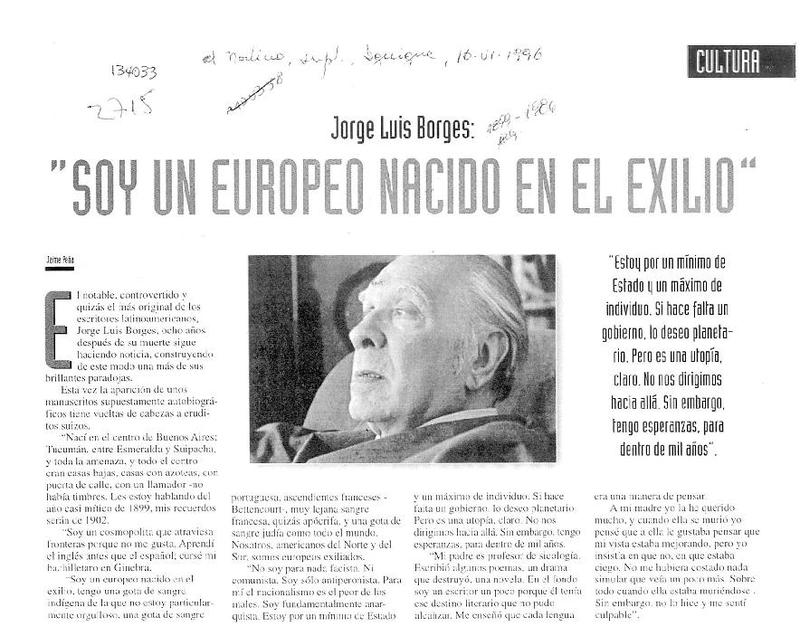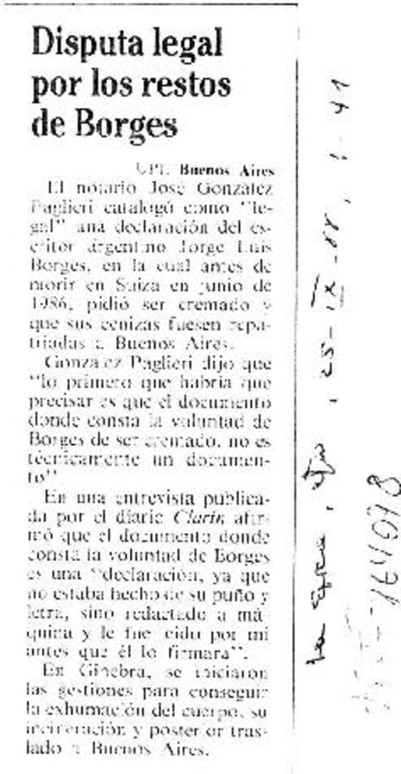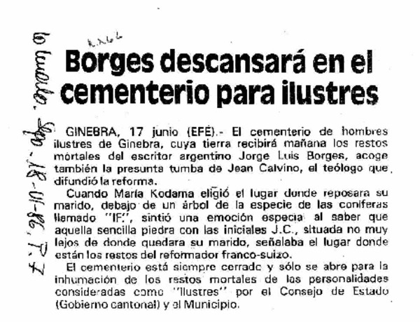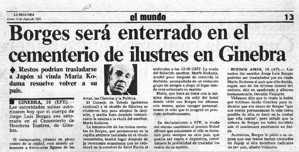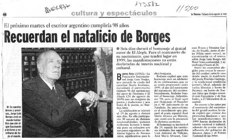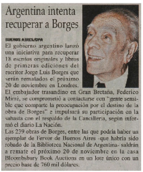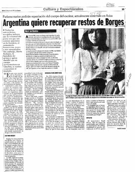 Argentina quiere recuperar restos de Borges [artículo] Rodolfo Arenas.