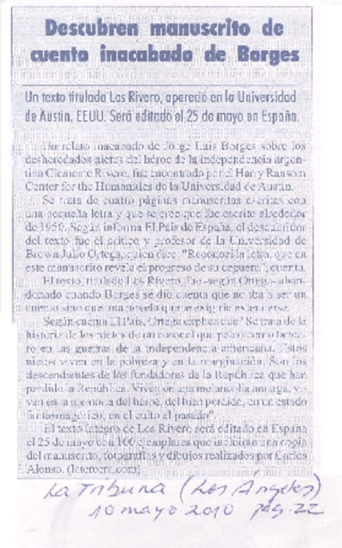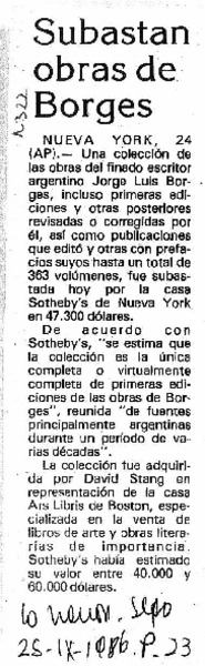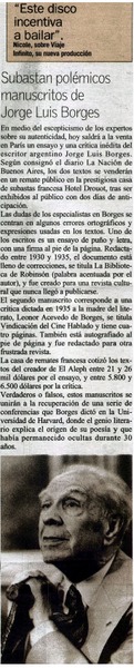Subastan polémicos manuscritos de Jorge Luis Borges. [artículo]