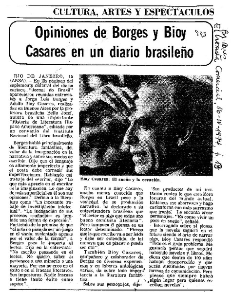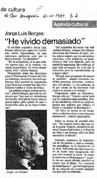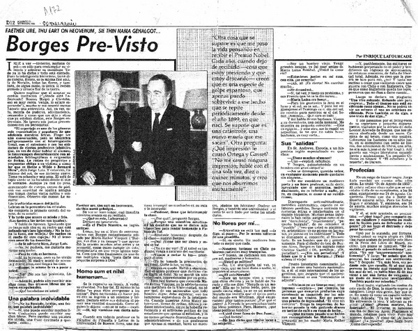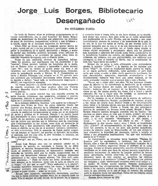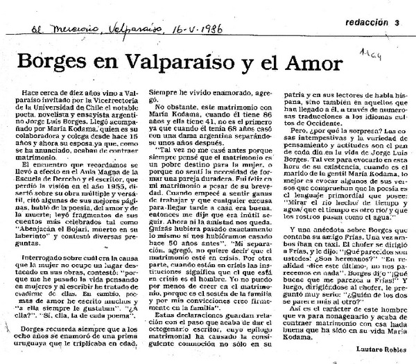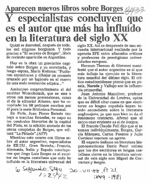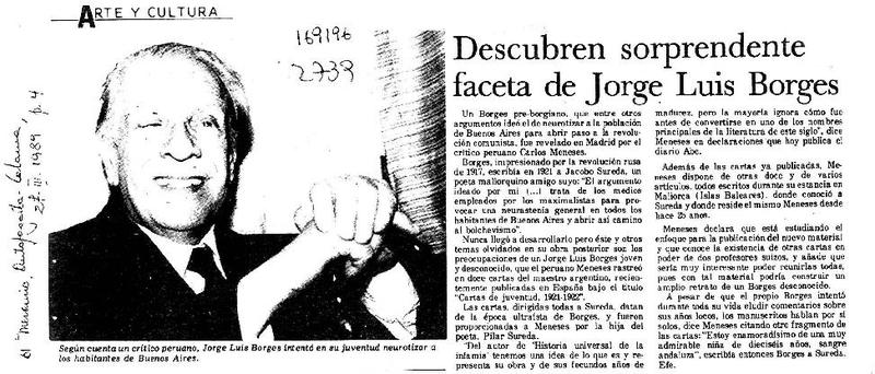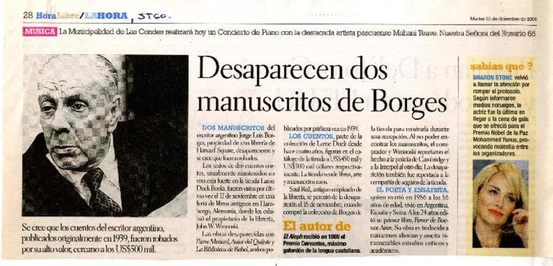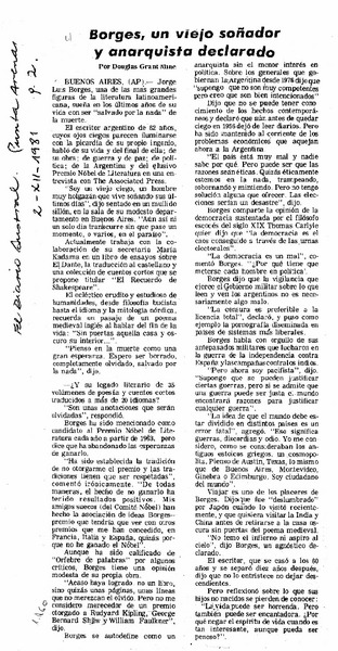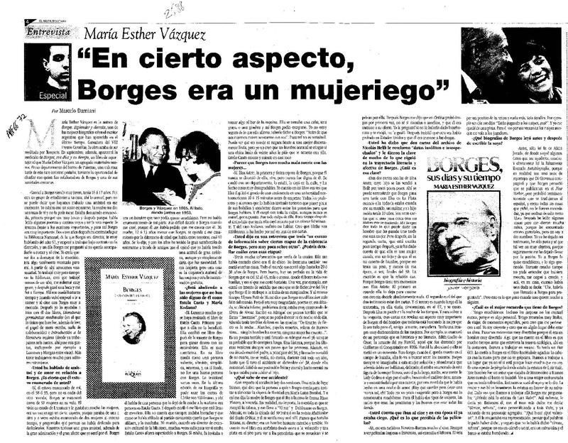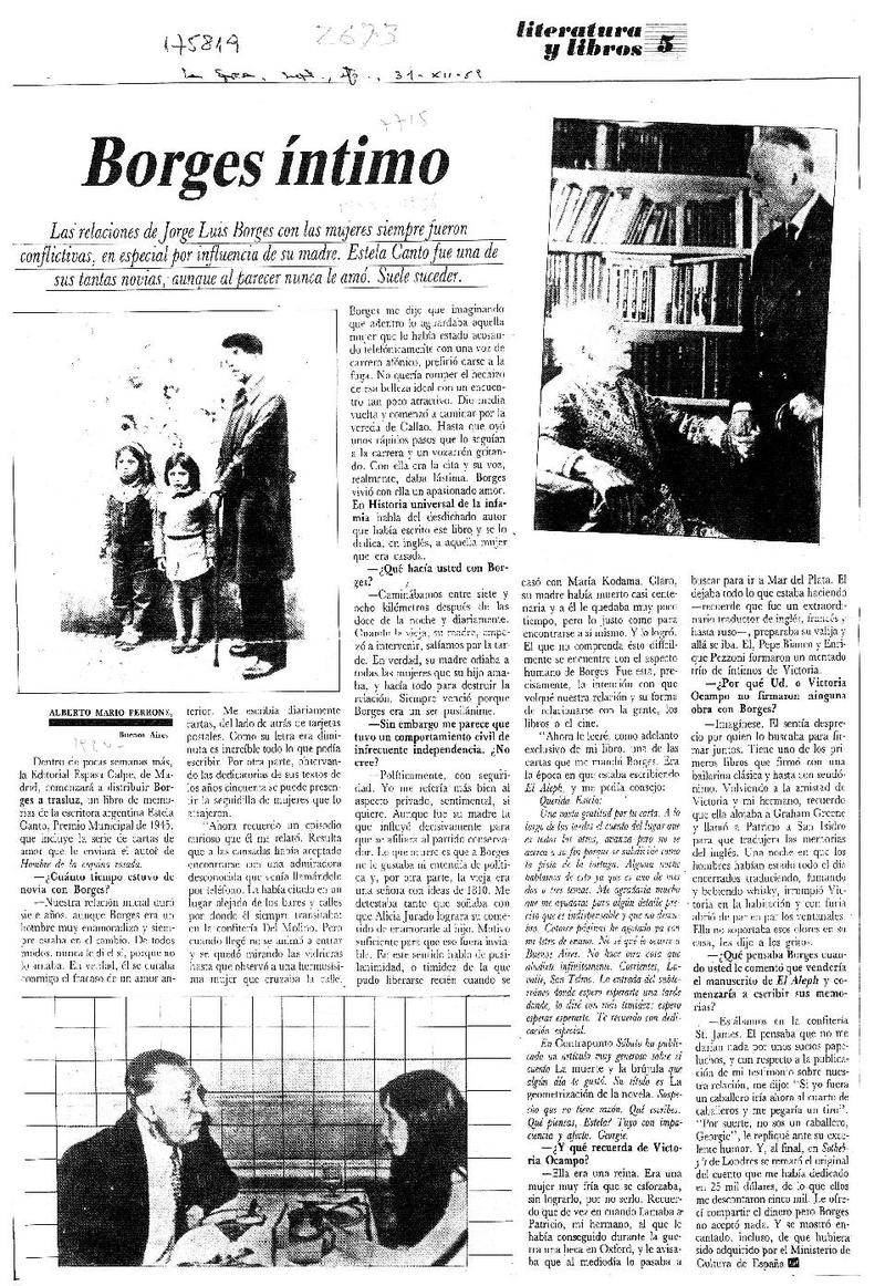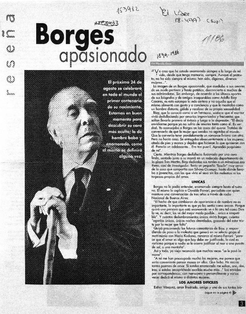 Afirman que una veinteañera fue el último amor de Borges [artículo] A.G.B.