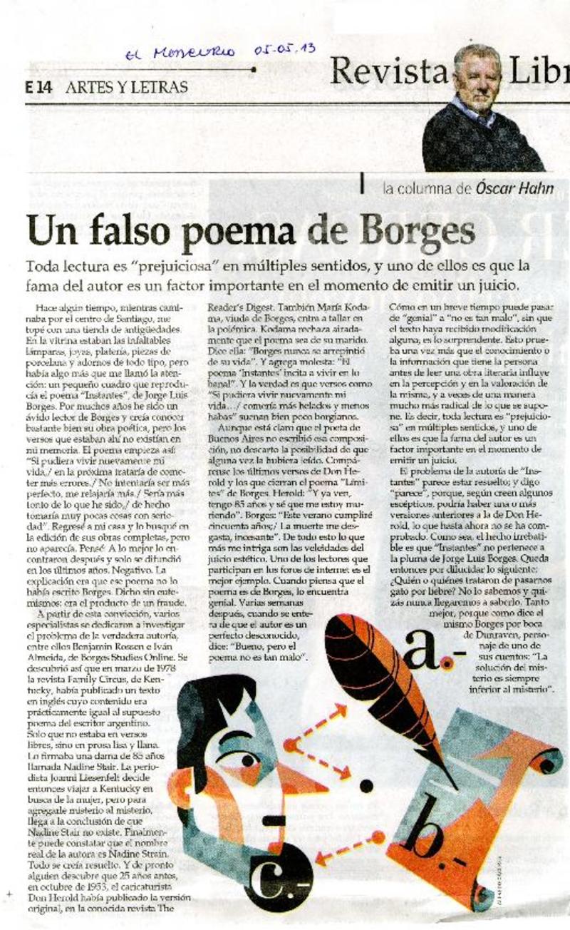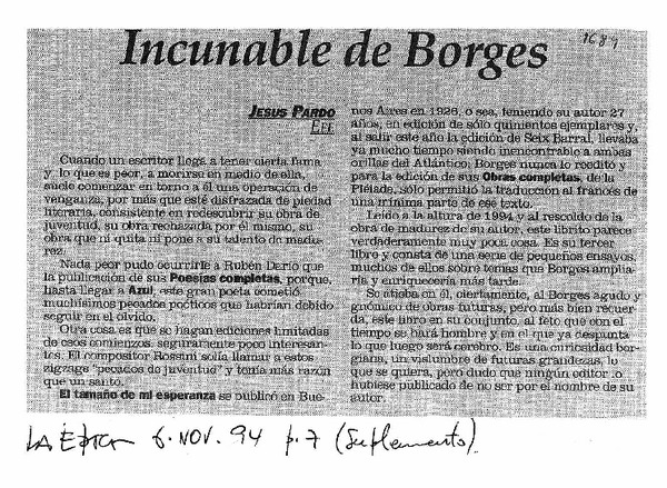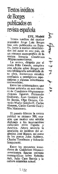 Textos inéditos de Borges publicados en revista española. [artículo]
