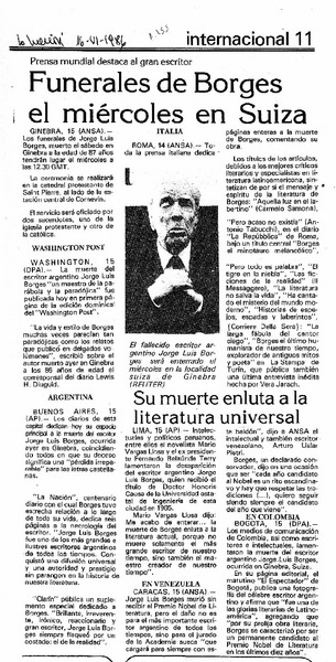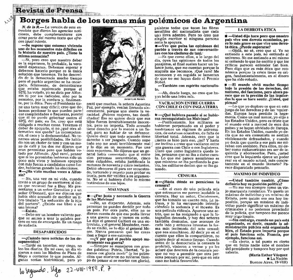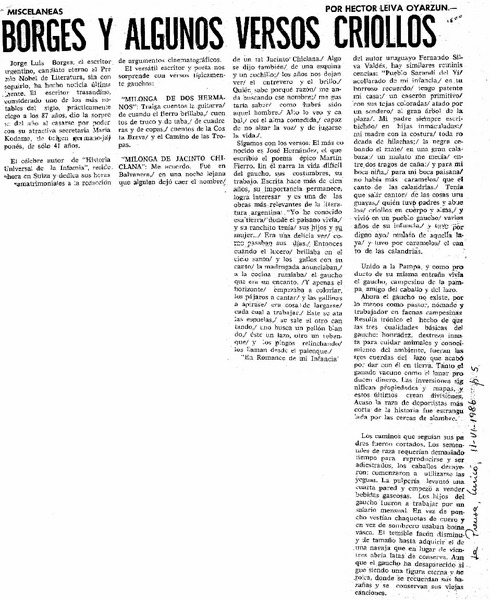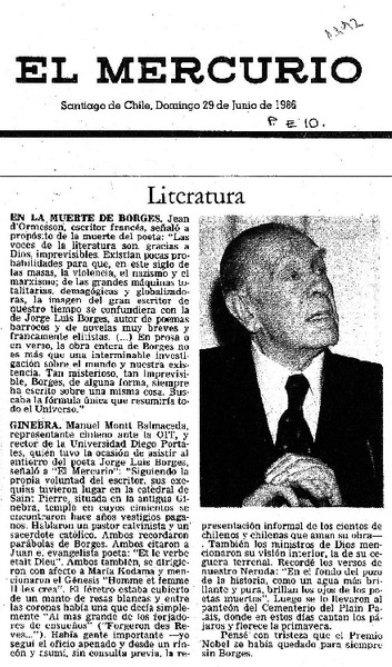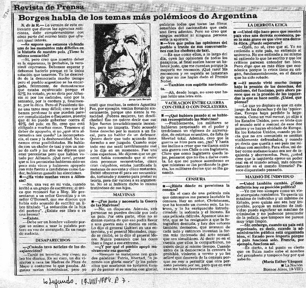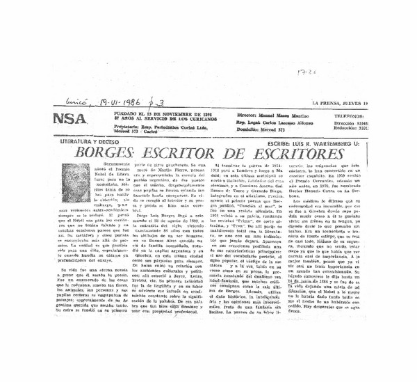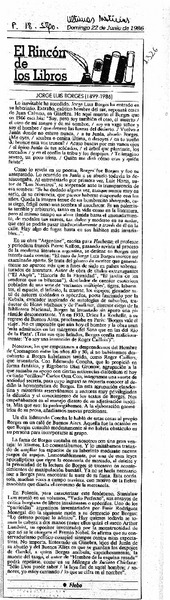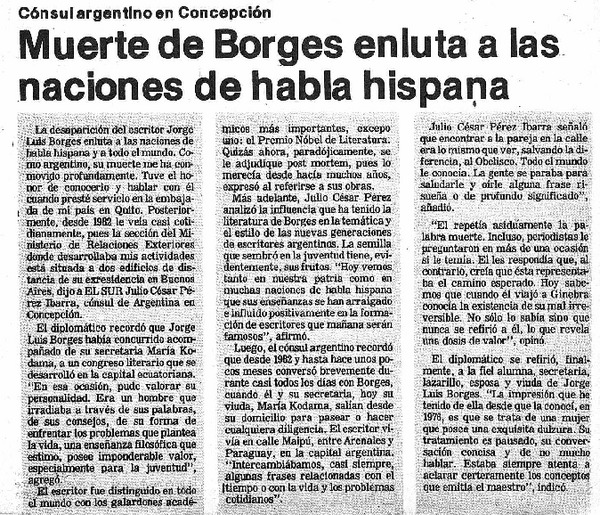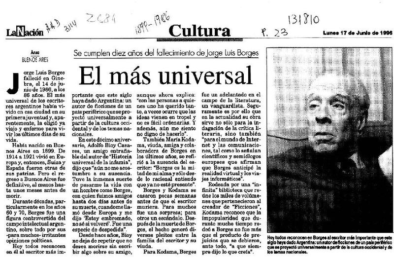 A diez años de la muerte del gran escritor argentino Jorge Luis Borges. [artículo]