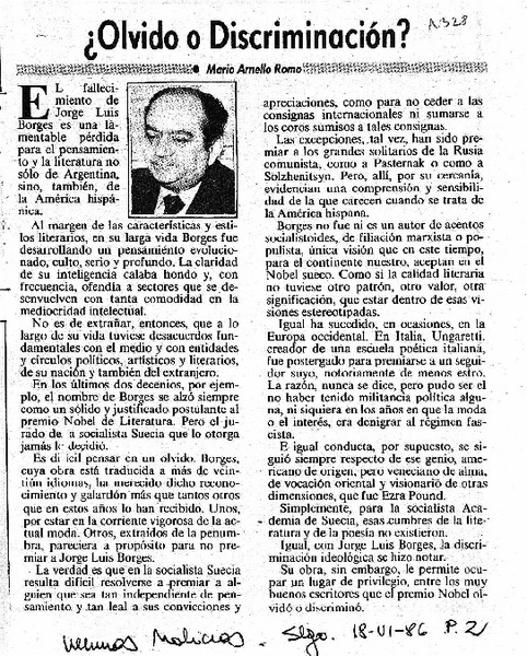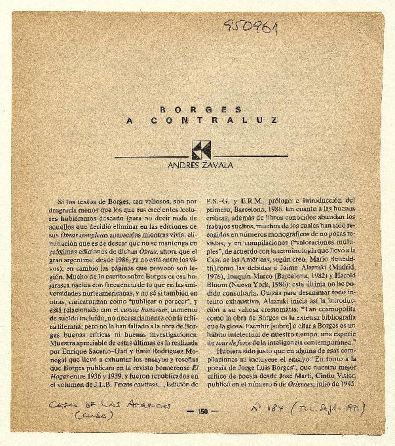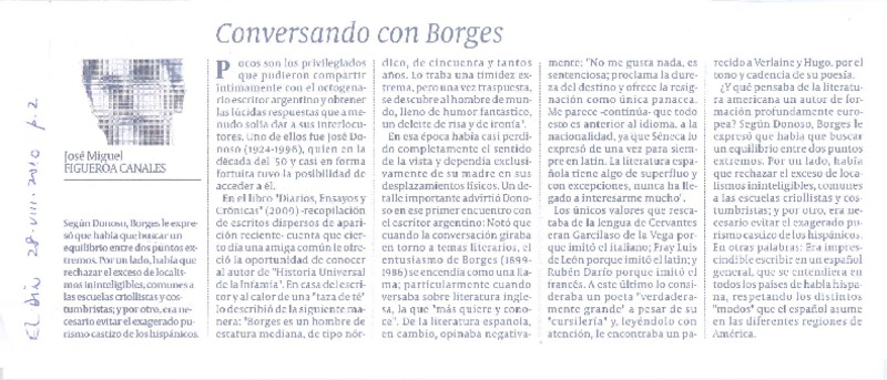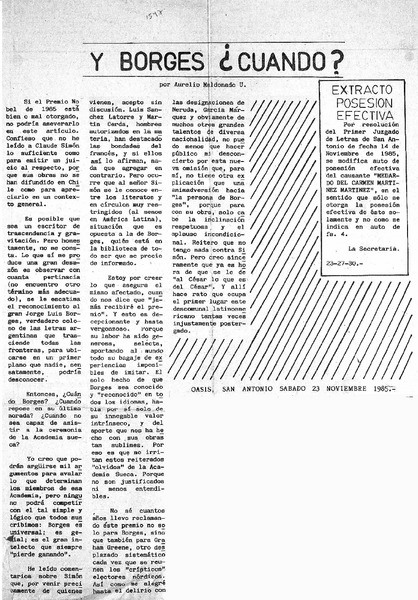 Y Borges ¿cuando? [artículo] Aurelio Maldonado U.