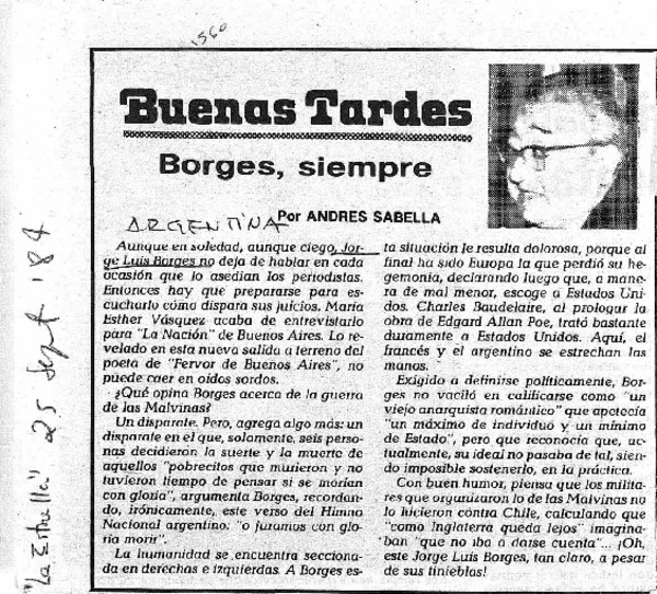 Se cumplen cinco años de la muerte de Borges [artículo].